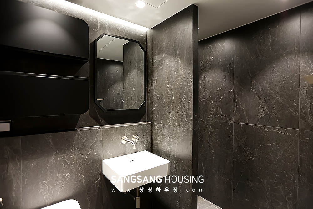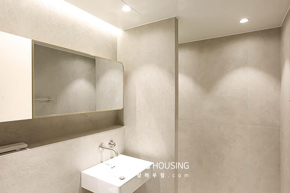Bathroom, ÈÀå½Ç¿å½ÇÀº µÎ °³ ¸ðµÎ ¼·Î ´Ù¸¥ ºÐÀ§±â·Î ¸¶°¨Çß½À´Ï´Ù. ÇÑ ¿å½ÇÀº ÈÀÌÆ® Ä÷¯¸¦ Áß½ÉÀ¸·Î ±ú²ýÇÏ°í ¹àÀº À̹ÌÁö¸¦ °Á¶Çß°í, ´Ù¸¥ ¿å½ÇÀº ºí·¢ Ä÷¯¸¦ Àû¿ëÇØ °í±Þ½º·´°í ¼¼·ÃµÈ ´À³¦À» »ì·È½À´Ï´Ù. µÎ °ø°£ ¸ðµÎ ½Ç¿ë¼º°ú µðÀÚÀÎÀ» µ¿½Ã¿¡ °í·ÁÇÑ ±¸¼ºÀÌ µ¸º¸ÀÔ´Ï´Ù.Main Room, ¾È¹æ